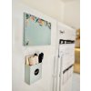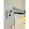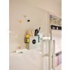- podlepen magnetickým proužkem a přiložena kovová samolepicí páska = pro umístění na nekovové povrchy (vestavěná lednice, potravinová či šatní skříň, nebo obklad, sklo či zeď)