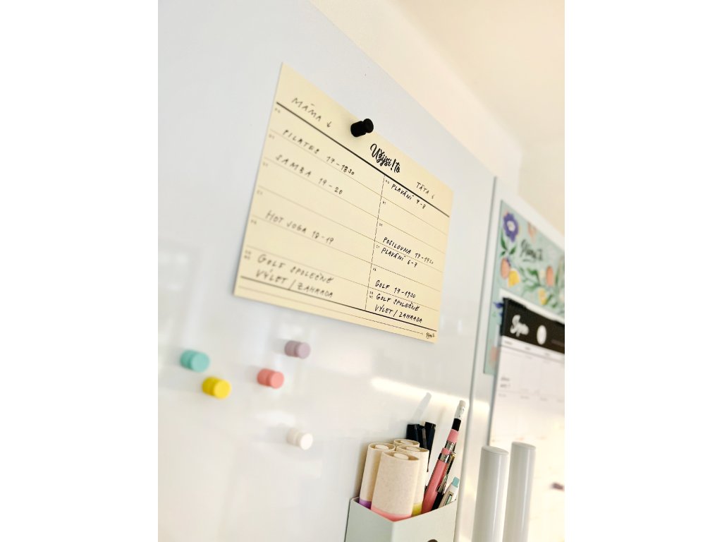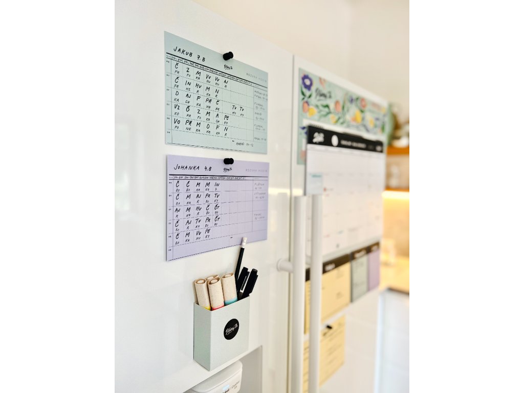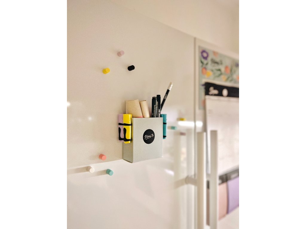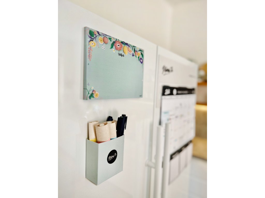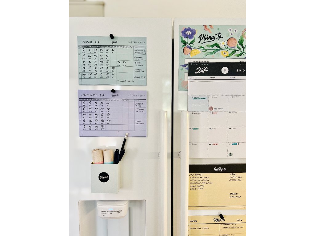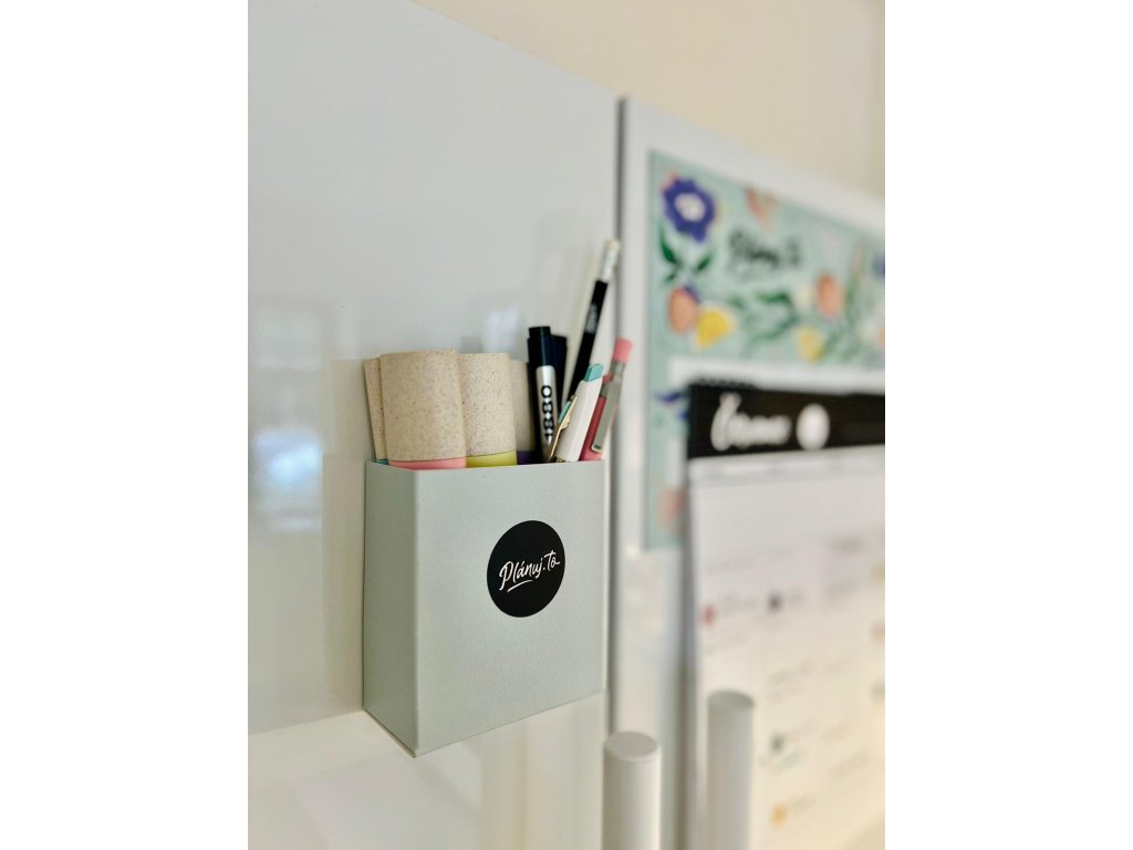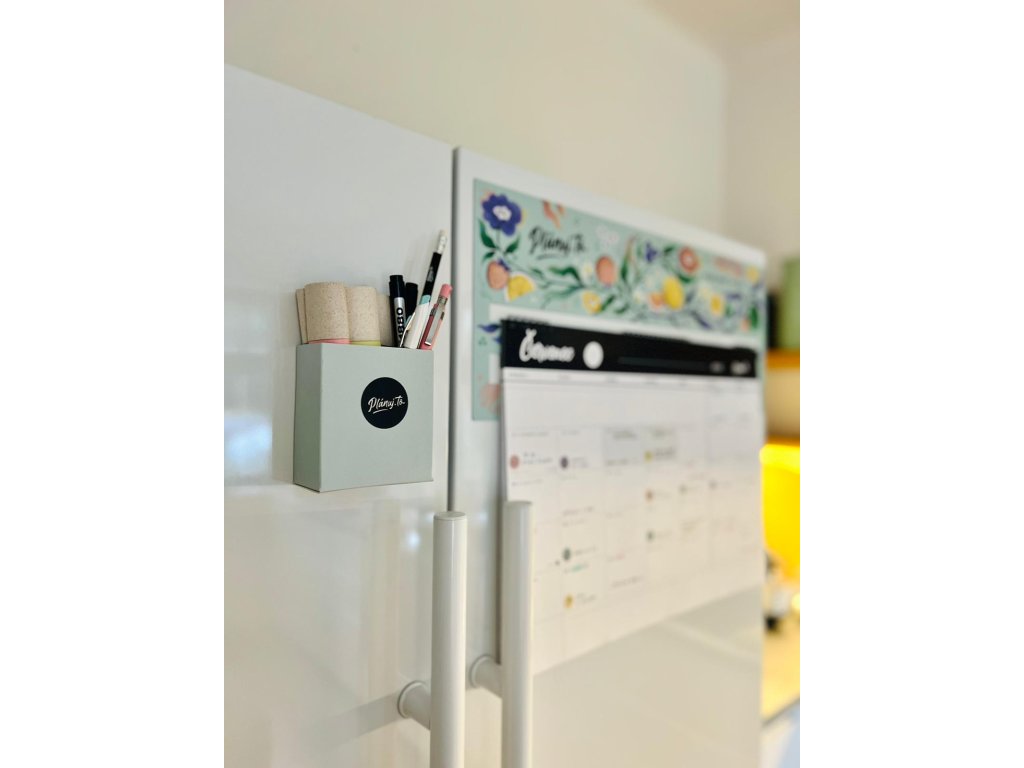 Box na psací potřeby na ledničku v barvách Plánuj.to. Konec hledání propisky, tužky, gumy i zvýrazňovačů! Vše na jednom místě hned vedle kalendáře a poznámkových bločků! Na lednici drží pomocí magnetických proužků a díky jednoduchému tvaru si box můžete přenést kamkoliv a postavit na stůl během psaní poznámek.